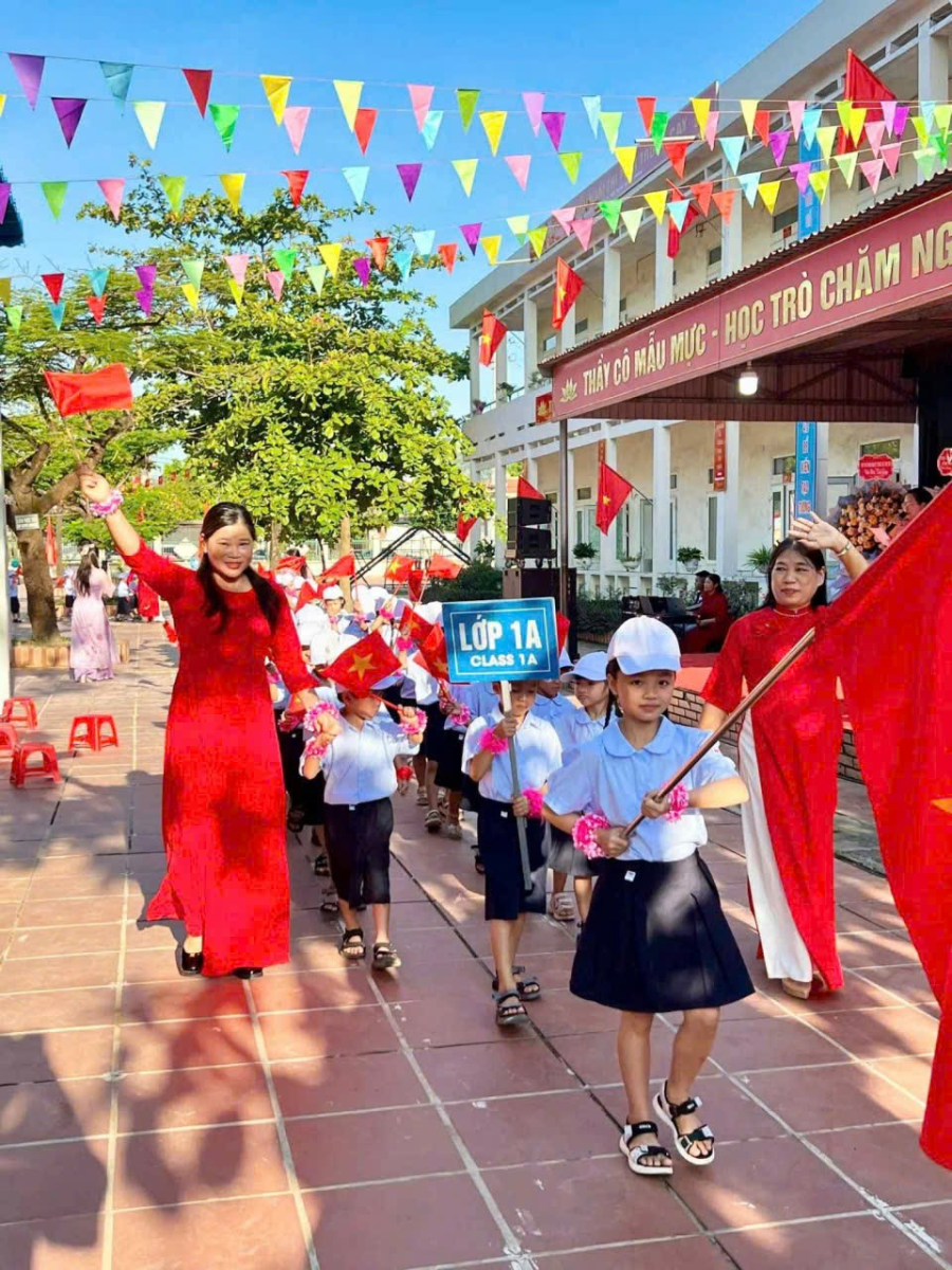 Sân trường hôm nay thật rực rỡ và tràn đầy niềm vui! Từ thầy cô trong Ban Giám hiệu, các thầy cô giáo đến các bậc phụ huynh và đặc biệt là những gương mặt thơ ngây, háo hức của các em học sinh, ai cũng nở nụ cười tươi tắn, rạng ngời. Tiếng trống khai trường vang lên giòn giã như lời chào mừng một năm học mới đầy hứa hẹn. Đây không chỉ là sự khởi đầu của một hành trình học tập mới mà còn là một ngày hội để thầy và trò nhà trường cùng nhau chia sẻ những cảm xúc tự hào, phấn khởi.