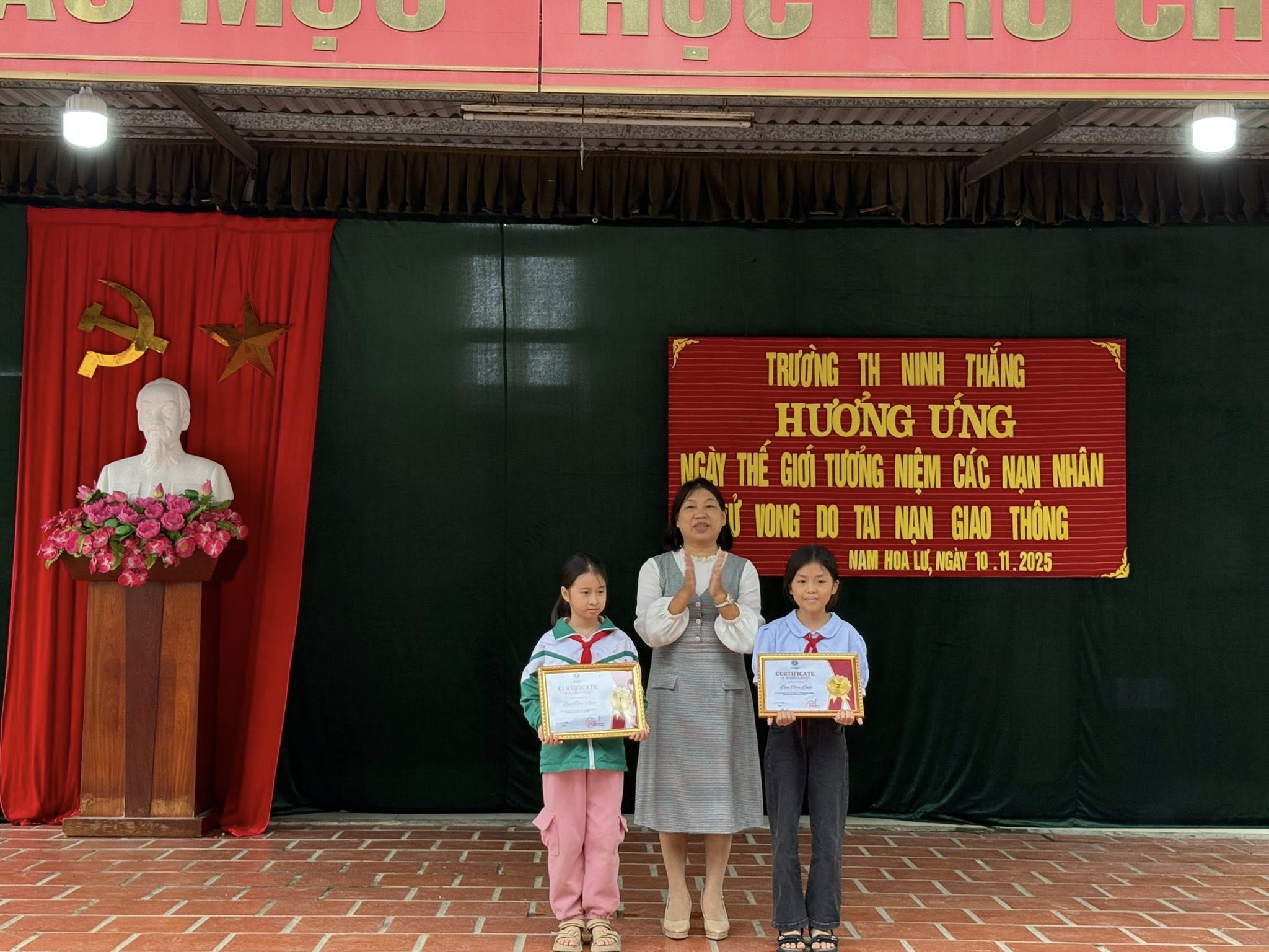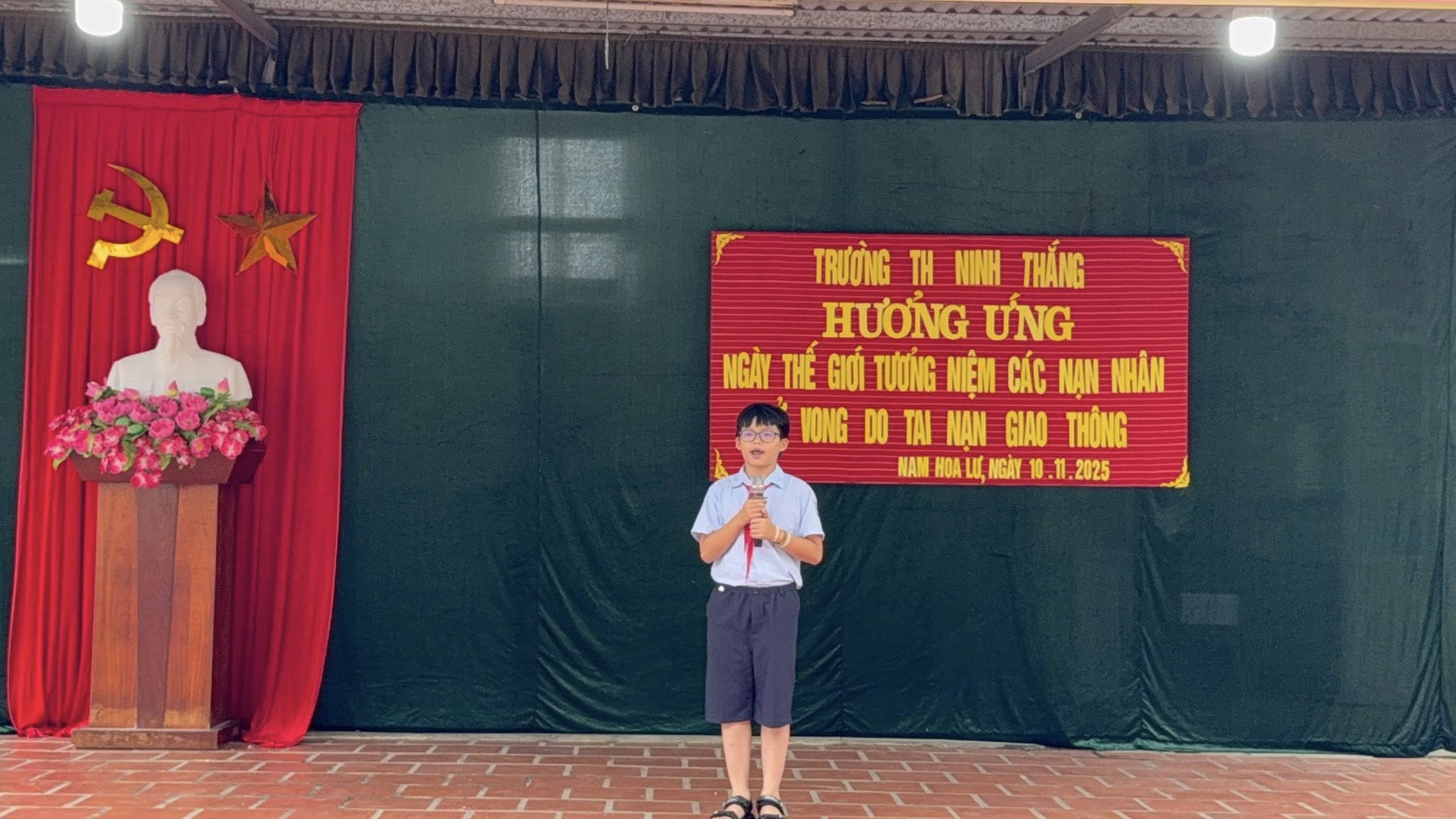• Thầy và trò trường Tiểu học Ninh Thắng đã cùng dành một phút mặc niệm để tưởng nhớ những người đã mất vì tai nạn giao thông, và chia sẻ nỗi đau với những gia đình đang gánh chịu mất mát.