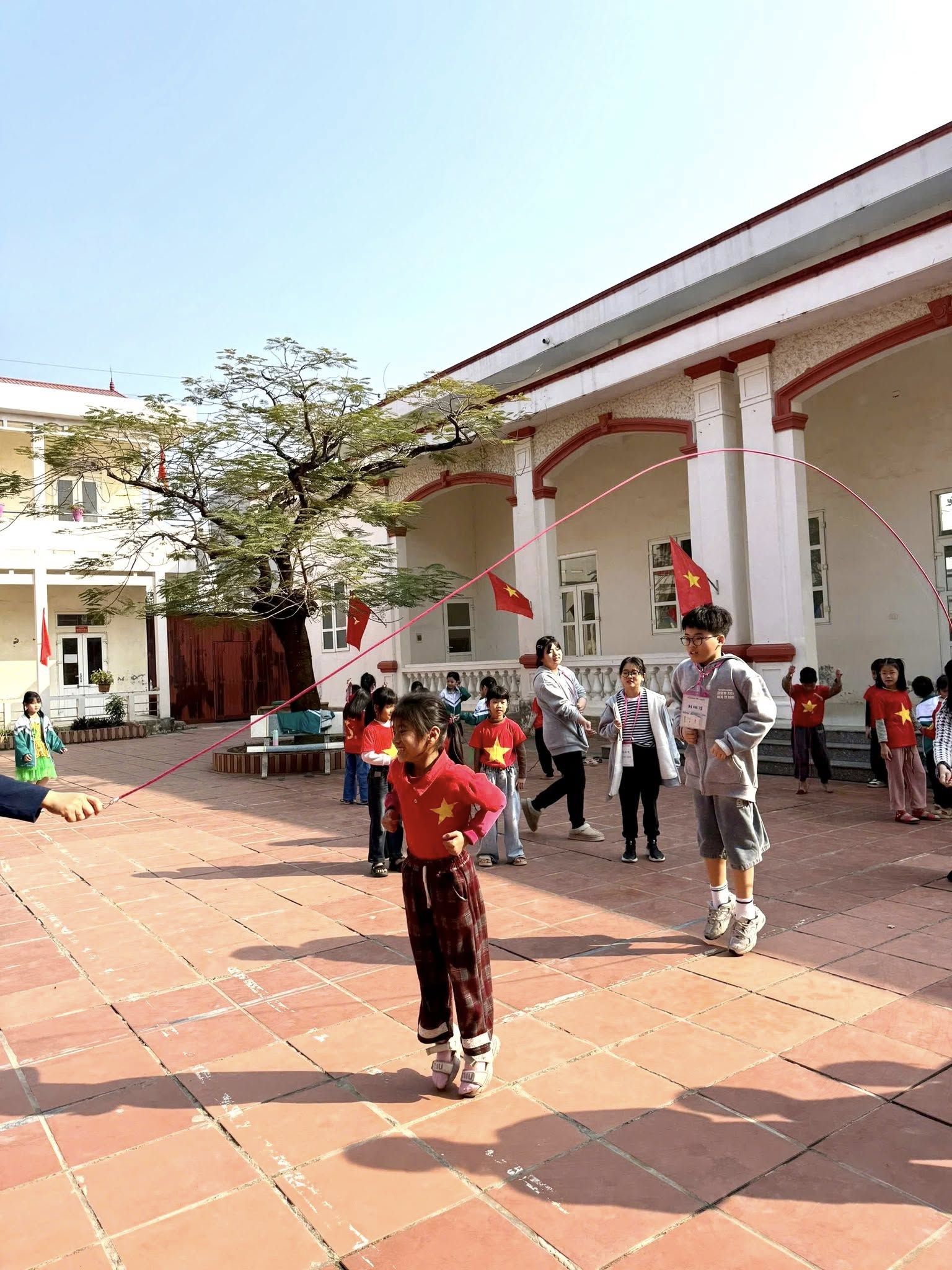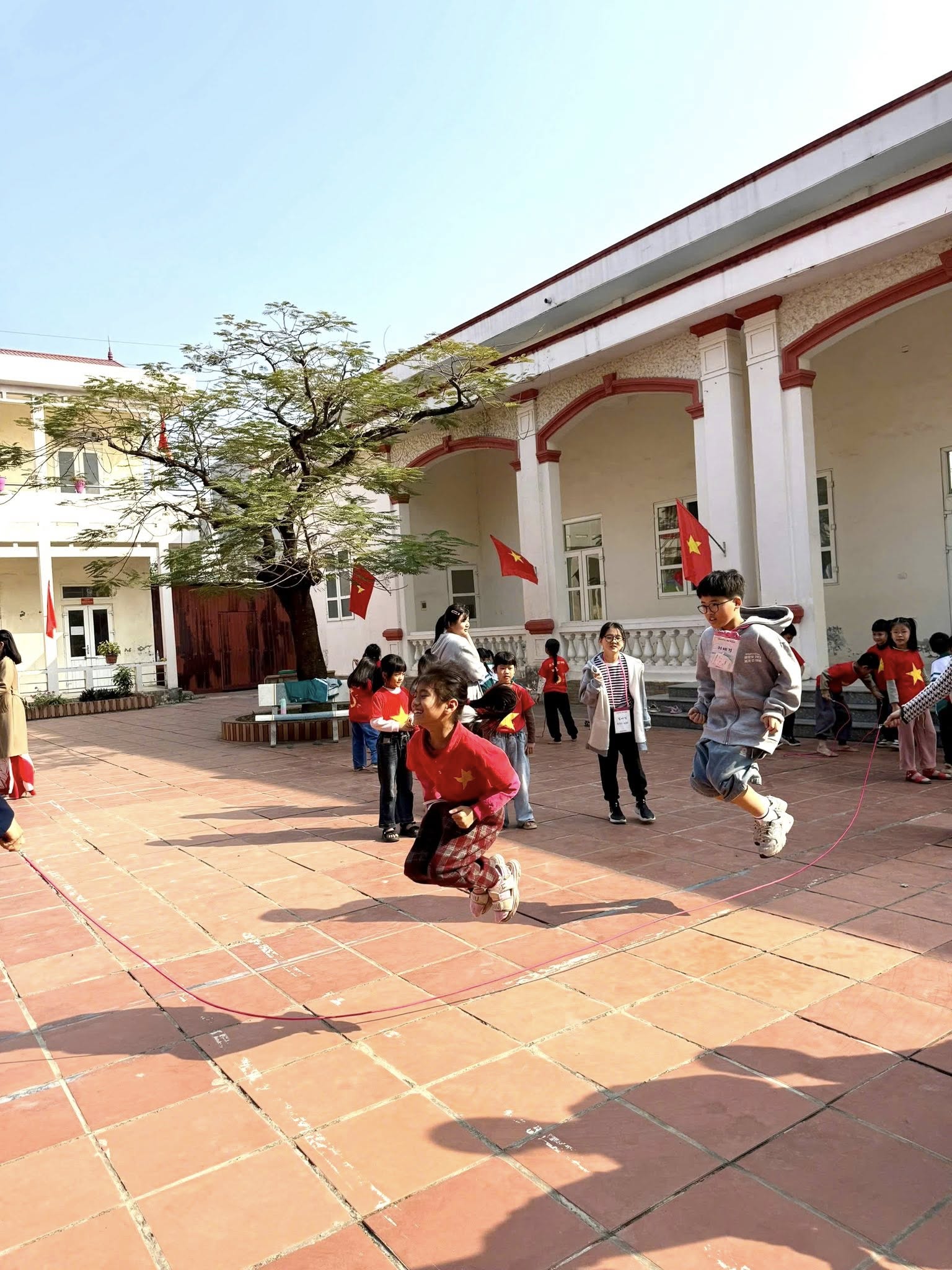 Bên cạnh hoạt động học tập, học sinh hai trường còn được tham gia các trò chơi dân gian Việt Nam như: mèo đuổi chuột, ô ăn quan, bịt mắt bắt dê, rồng rắn lên mây, kéo co, nhảy sạp … tạo không khí vui tươi, gắn kết và để lại nhiều ấn tượng tốt đẹp trong lòng bạn bè quốc tế.