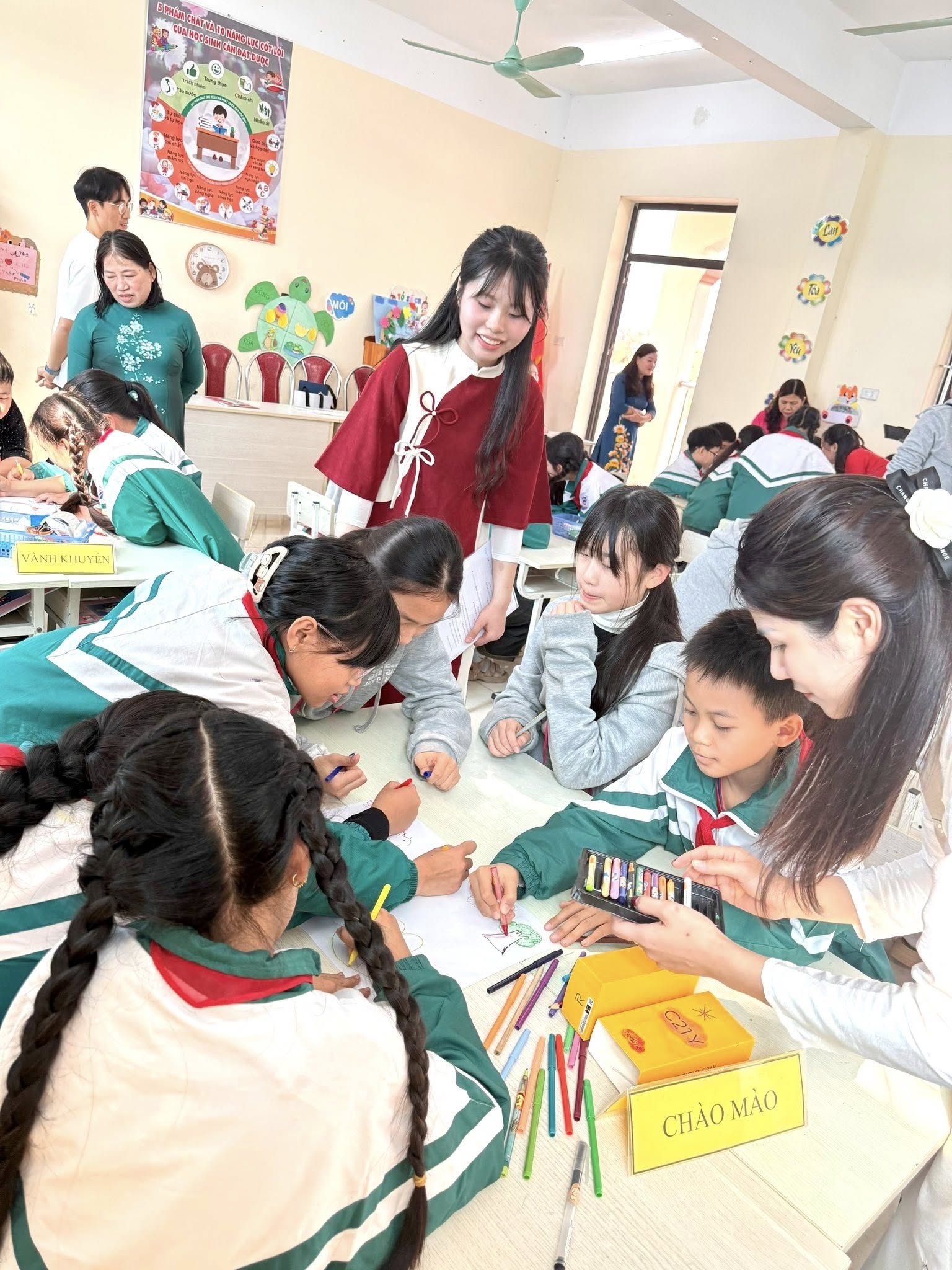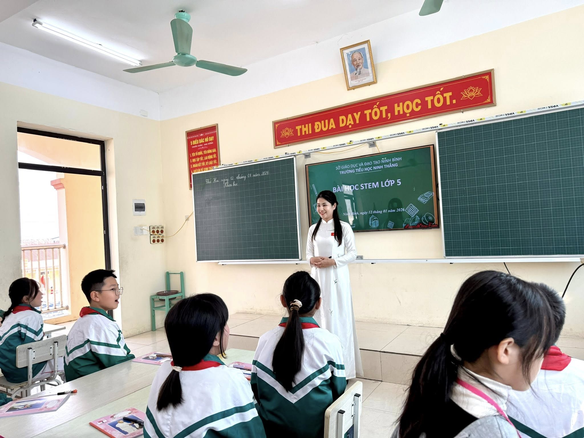 Trong khuôn khổ chương trình, học sinh Trường Tiểu học Muhak đã tham gia dự giờ và trải nghiệm tiết học STEM lớp 5 với chủ đề “ Vòng đời của động vật ”, cùng học sinh Trường Tiểu học Ninh Thắng thực hành, sáng tạo sản phẩm học tập. Qua đó, giáo viên hai trường có dịp trao đổi, chia sẻ kinh nghiệm trong tổ chức dạy học STEM và giáo dục kỹ năng cho học sinh tiểu học.