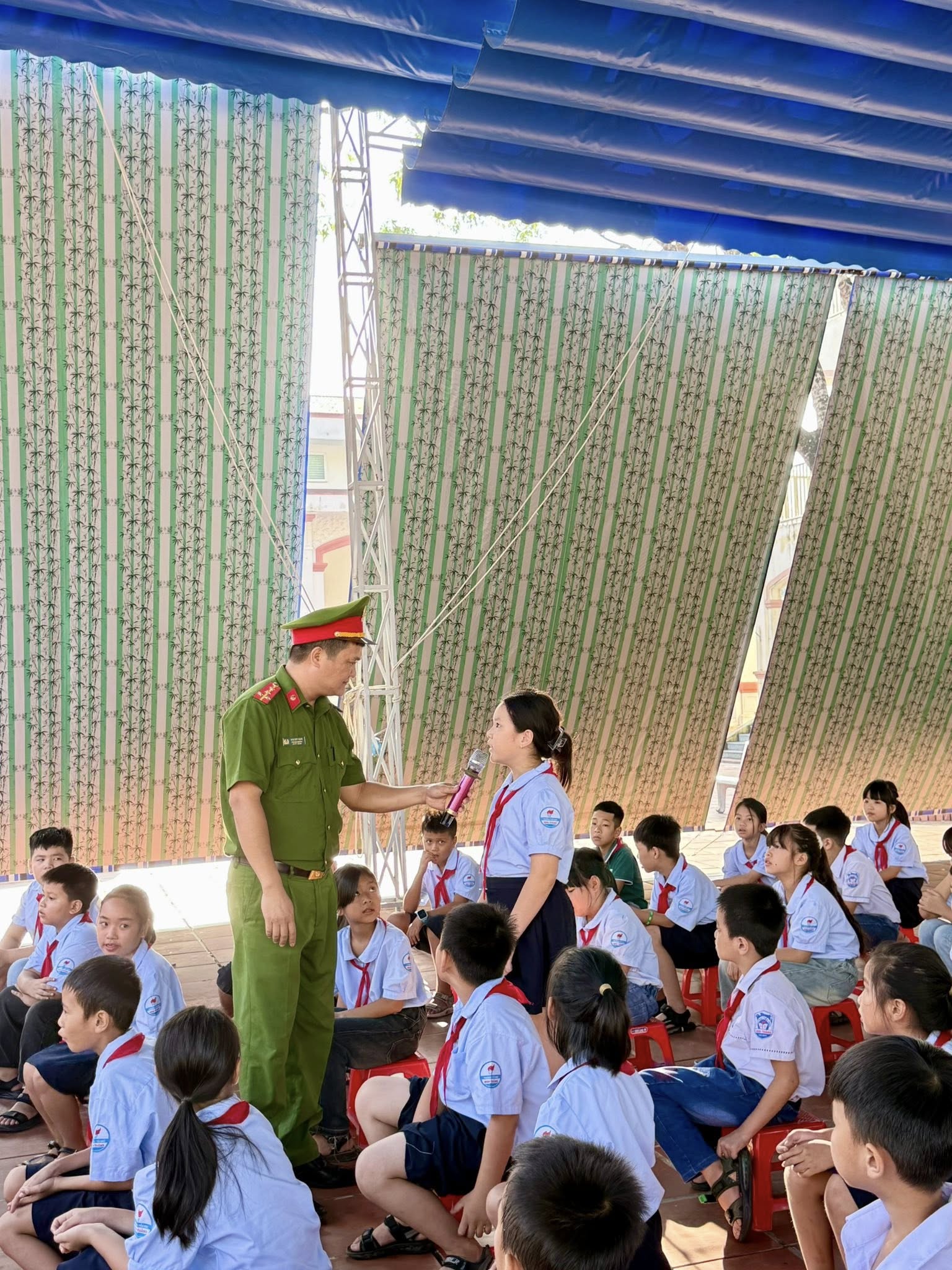 Đại diện công an phường đã trực tiếp chia sẻ với các em học sinh về các hình thức bạo lực học đường, tác hại của bạo lực đối với sự phát triển của trẻ em, cũng như cách nhận biết các dấu hiệu bạo lực. Các em cũng được hướng dẫn về cách xử lý khi chứng kiến hoặc trở thành nạn nhân của bạo lực học đường, như tìm kiếm sự trợ giúp từ giáo viên, bạn bè, hoặc cơ quan chức năng.